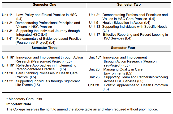 | 3 | Supporting the Individual Journey through Integrated HSC | Core | 15 |